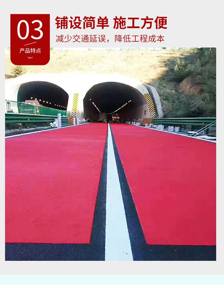 目前传统的沥青路面在刚铺设完成后短期内的防滑性能也非常好,但是经过一段时间的摩擦损耗后,路面表面结构深度就会变小,这样就大大的降低了防滑性能,而陶瓷颗粒防滑路面的特性就是不掉砂,使用一段时间之后也不会降低路面的防滑性能,所以对提升路面行车安全有很大的效果。