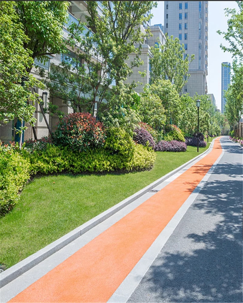 3、降低嗓音:彩色防滑路面的结构可以有效降低轮胎与地面接触点的噪音,还可以产生漫反射现象将发动机传到路面上的部分嗓音消耗。