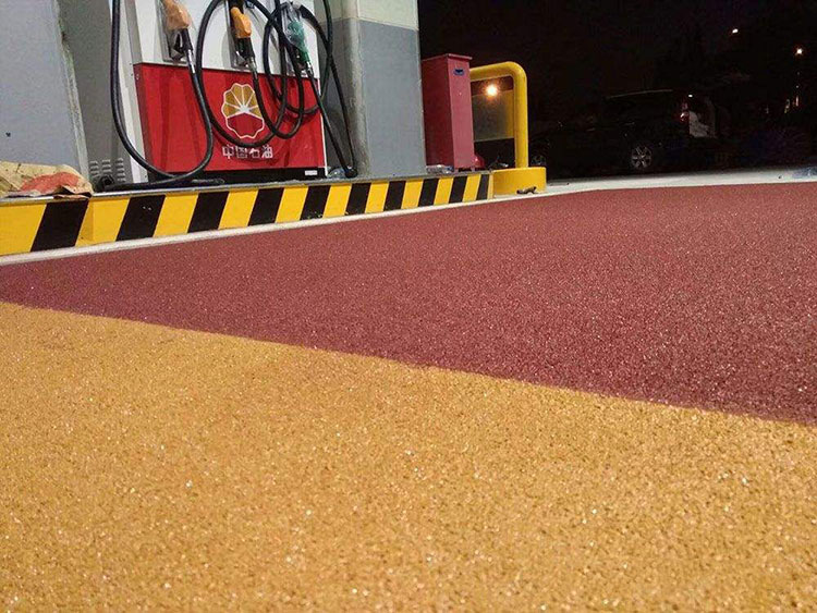 4、性能持久:采用天然通体彩色石料和彩色陶瓷颗粒作为骨料,特殊的颇色则通过复杂的染色工艺对硬质骨料进行染色得到,粘结剂根据施工部位的环境和成本控制的需要针对性的在改性环氧、聚氨酯、PMMA、聚丙烯四类耐候性卓越的树脂中选择,得到的成品是一劳永逸的路面处理系统,直到所依附的路面基层需要维修。